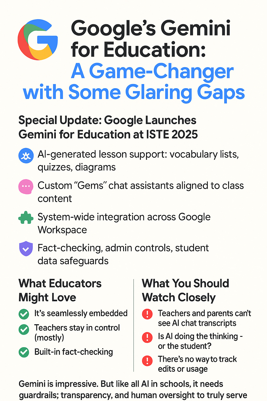 Gemini is impressive. But like all AI in schools, it needs guardrails, transparency, and human oversight to truly serve students.