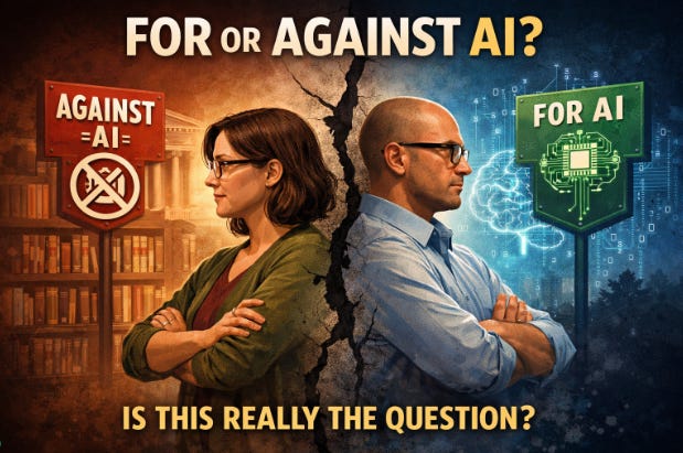 The conversation around artificial intelligence in education and libraries has collapsed into a false choice. You are either for AI or against it. You are either embracing it or resisting it. That framing may feel decisive, but it is deeply misleading.